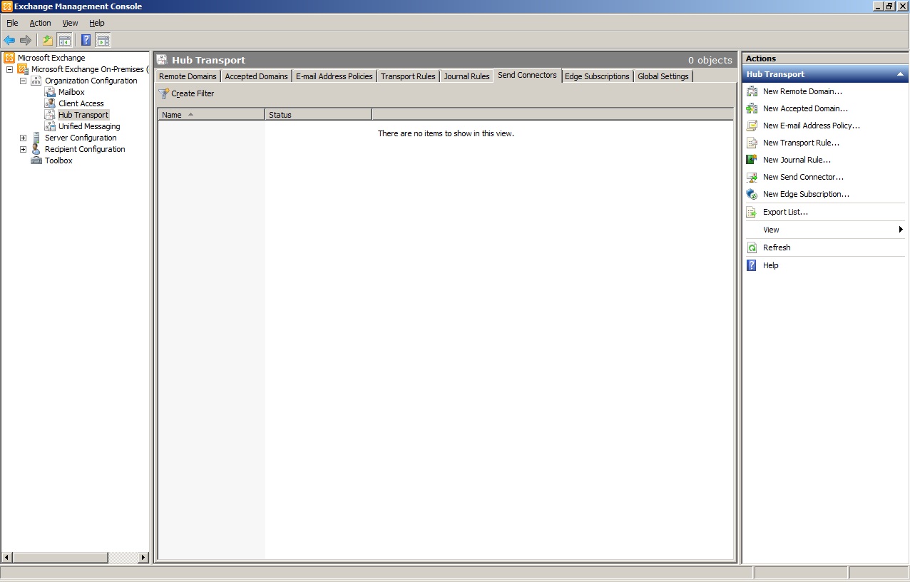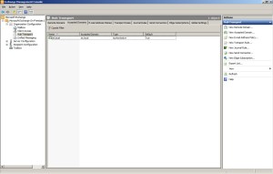 Receive Connector : Serverımızın gelen mailleri kabul etmesi için “Receive Connector” üzerinde ayarlar yapmamız gerekir. Bunun için, Exchange Management Consol’da Server Configuration > Hub Transport > Receive Connectors kısmına geliyoruz.